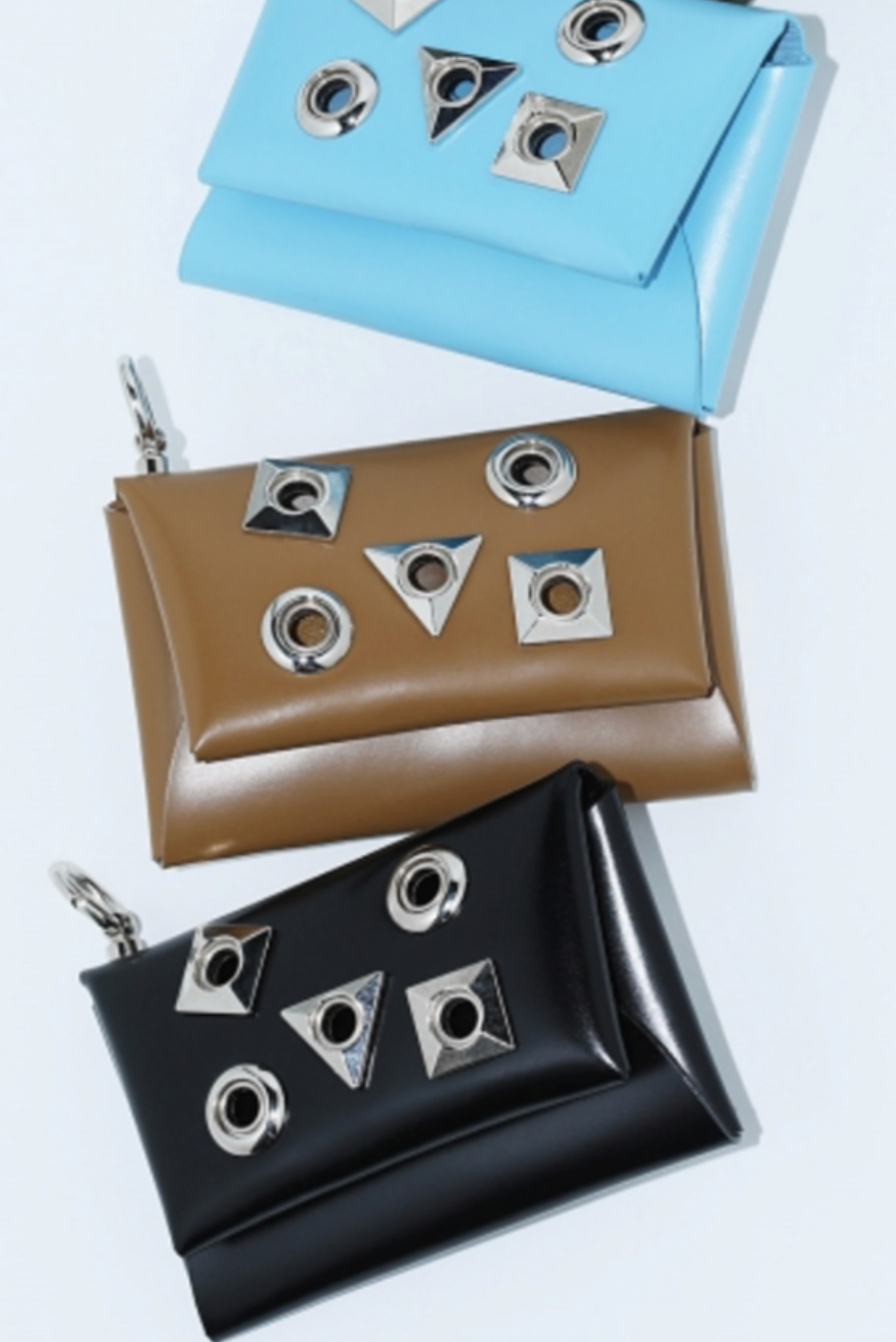 Porte carte en cuir rigide avec studs en métal